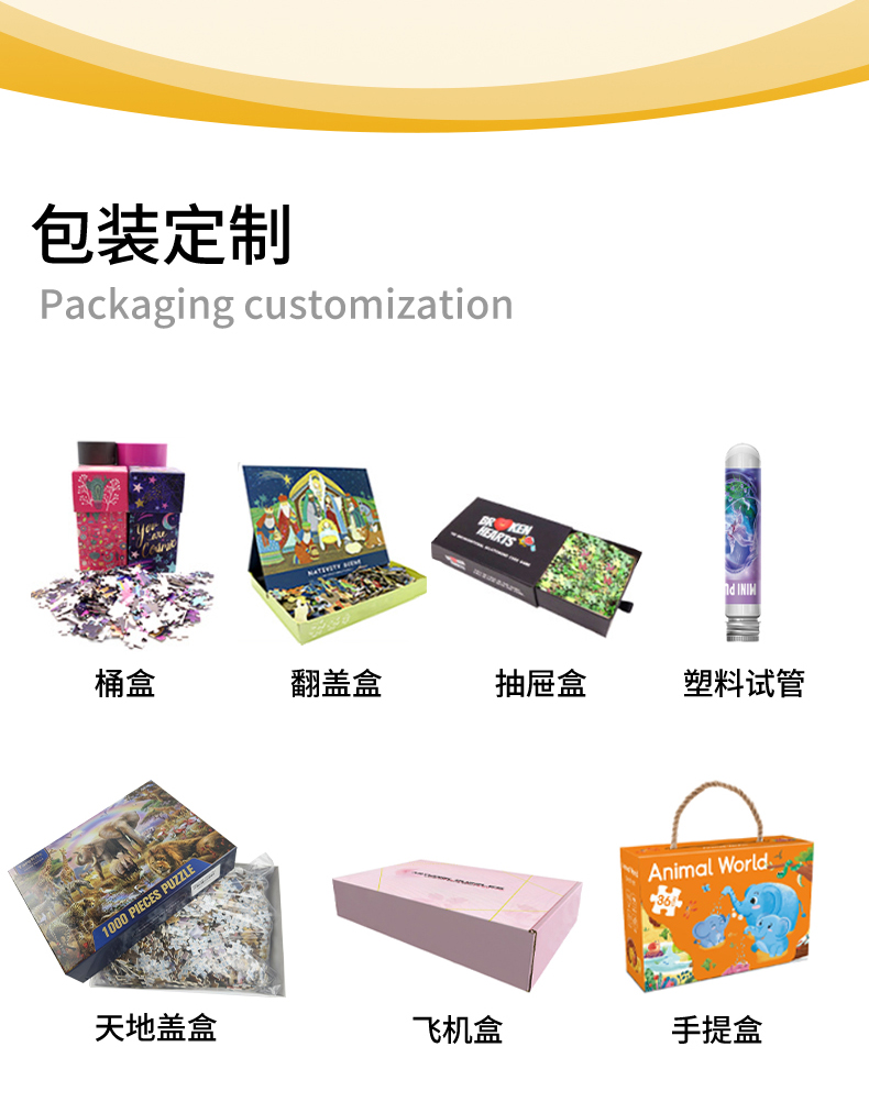 拼圖名稱:木制拼圖異形動(dòng)物 拼圖尺寸:260*330*4.5MM 拼圖片數(shù):201片 加工方式:廠規(guī)、來圖定制 包裝尺寸:220*160*45mm